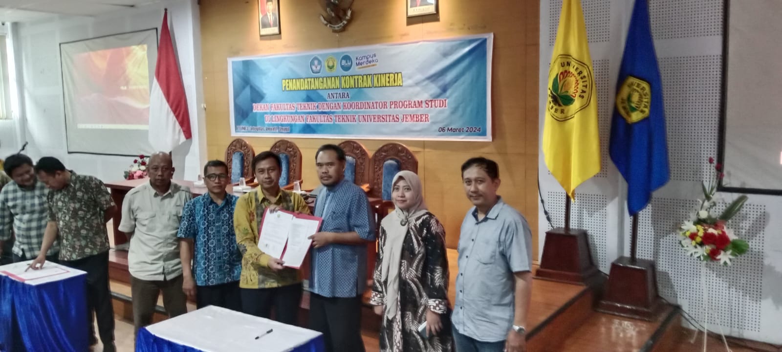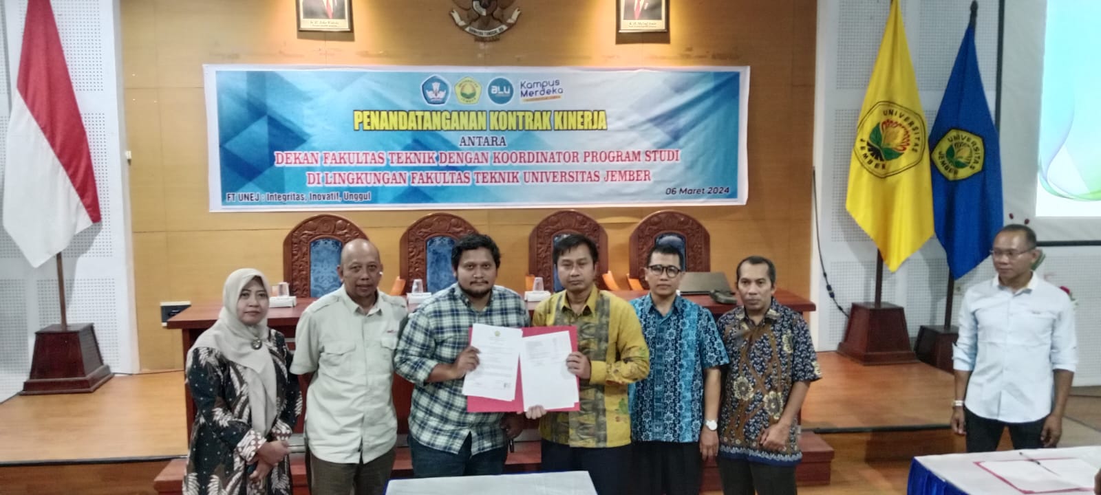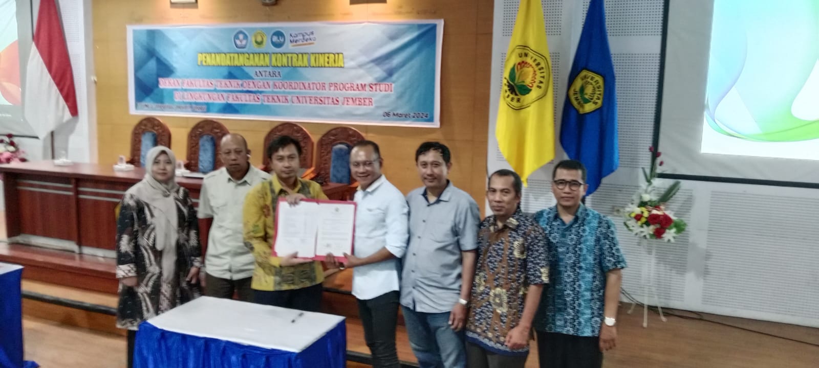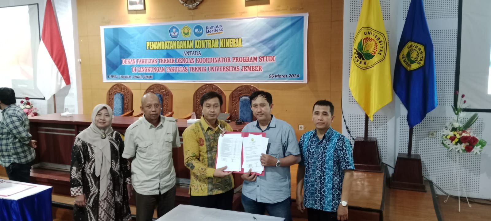 FTUNEJ mengadakan penandatanganan kontrak kinerja antara Dekan Fakultas Teknik dengan Koordinator Program Studi di Lingkungan Fakultas Teknik Universitas Jember.